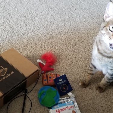 Her favorite time of the month was when her meowbox arrived. She could smell it the moment it came in the door, and she would sit pretty and beg for us to open it for her!