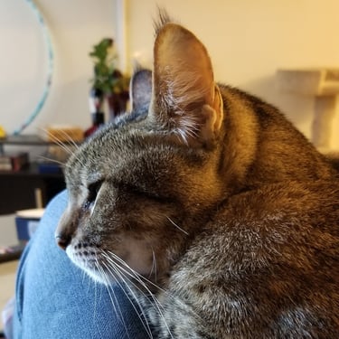 Eve's transition cat- they both grew up together. Eve got her first apartments with Bella, and Bella stuck with Eve through heart failure until she got married to Steven- who she also adored.