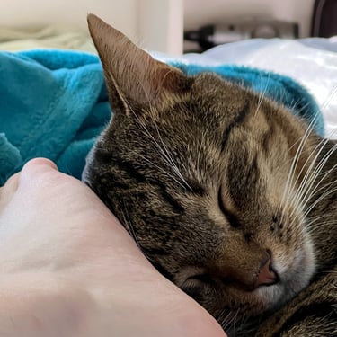 He was the little spoon at night. Sat on the center console in the truck during road trips. Loved to play with fish and birds projected onto the wall. He wanted to be in the same room, helping, participating, observing, whatever he could get away with. He loved it when he could hold on to a part of you- your foot, hand, leg!